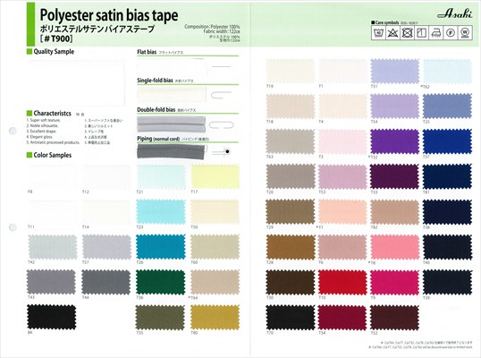 帯電防止加工を施したポリエステル100%の素材です。#H930ソフトサテンバイアスの後継と位置付け在庫展開を開始いたしました。ドレープ性があり上品な光沢感が特長です。こちらは両折バイアステープです。