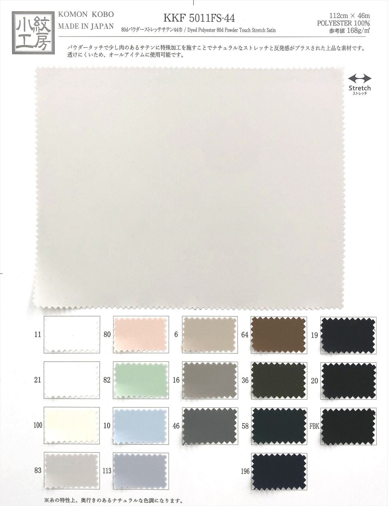 80dパウダーストレッチサテン44巾
