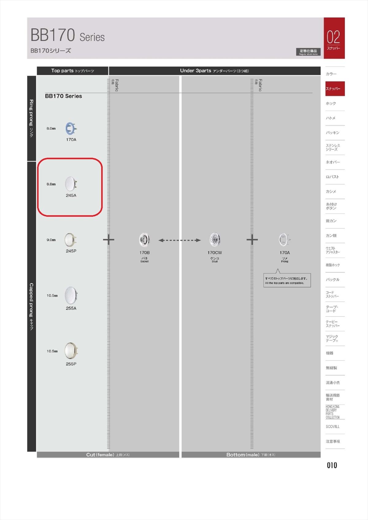 1708/777B 170CW/777CWと共に使用する、245Aトップパーツです。