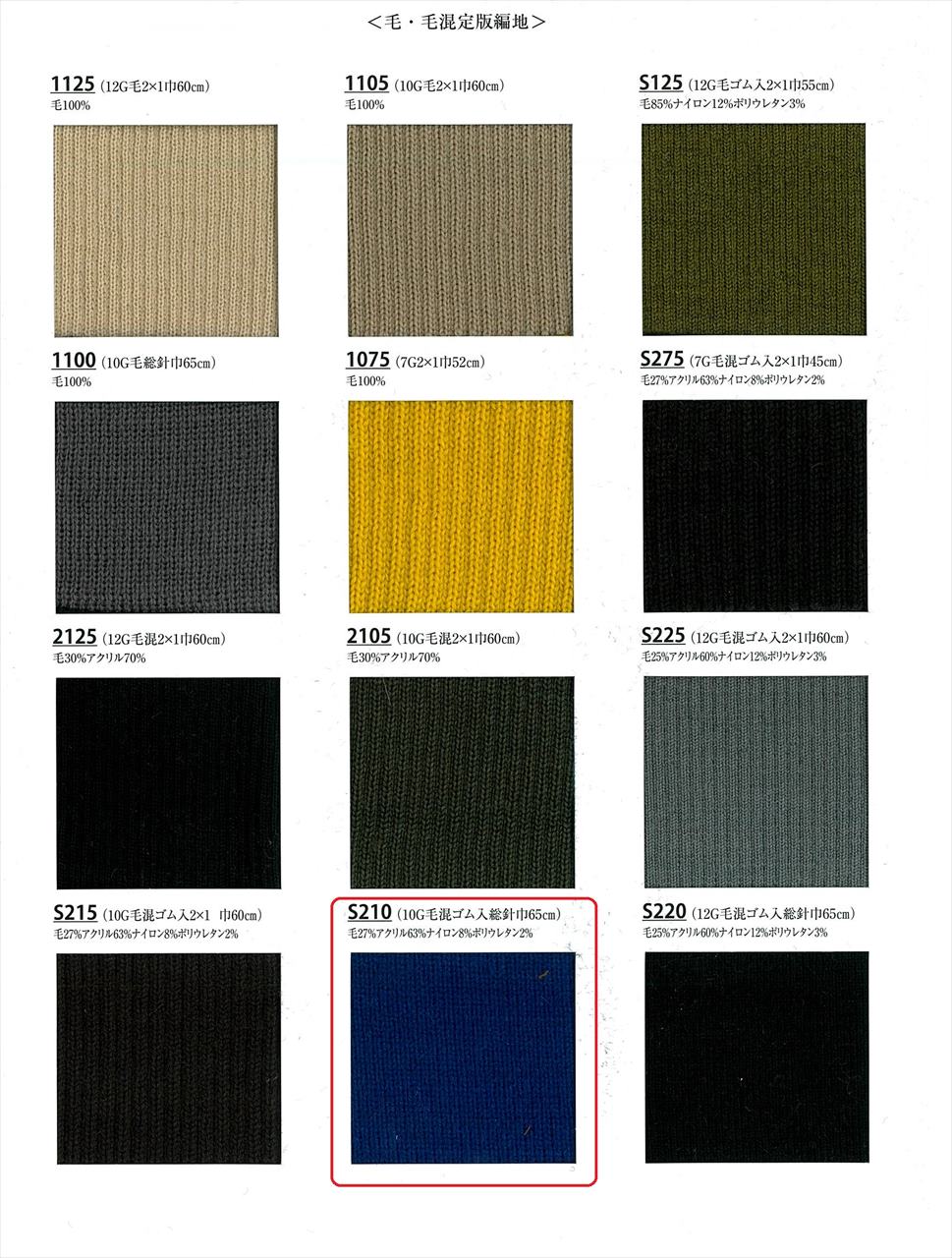 リブ 10G 毛混スパン入 総針 S210