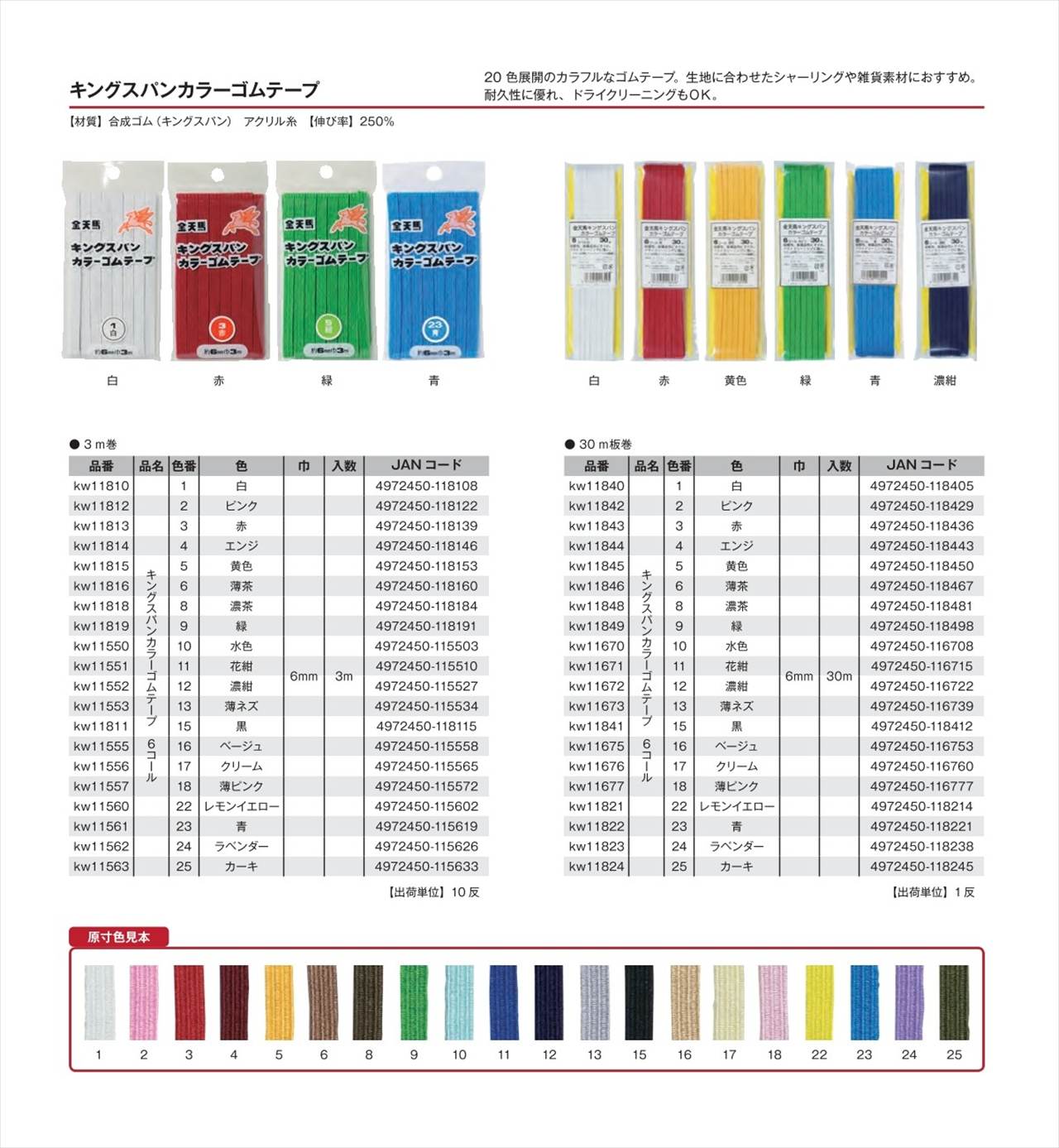 金天馬 キングスパンカラーゴムテープ 6コール KW11840