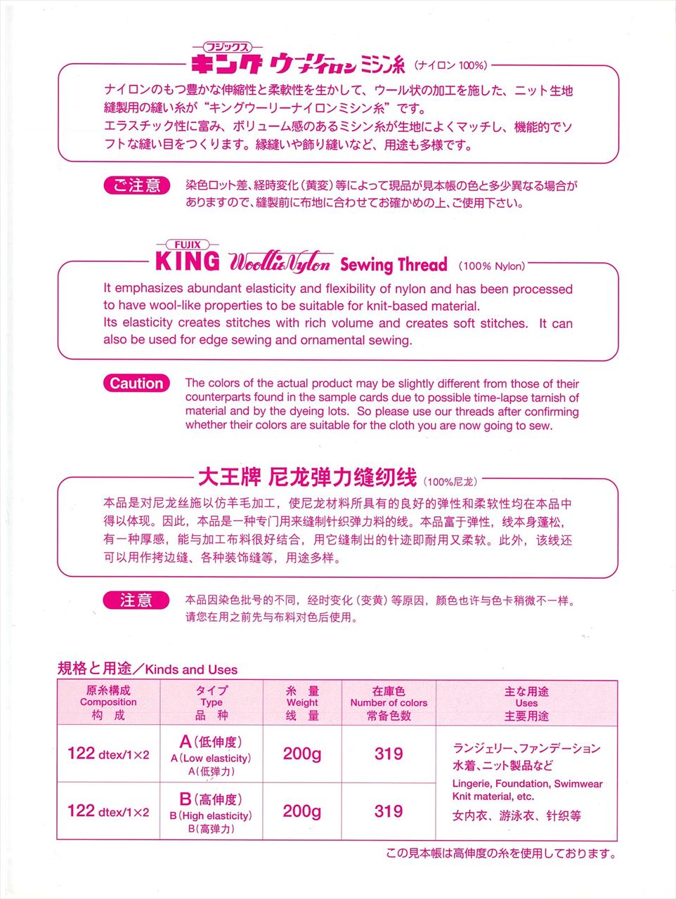 フジックス ポリエステル キング ウーリーソフト ミシン糸 低伸縮