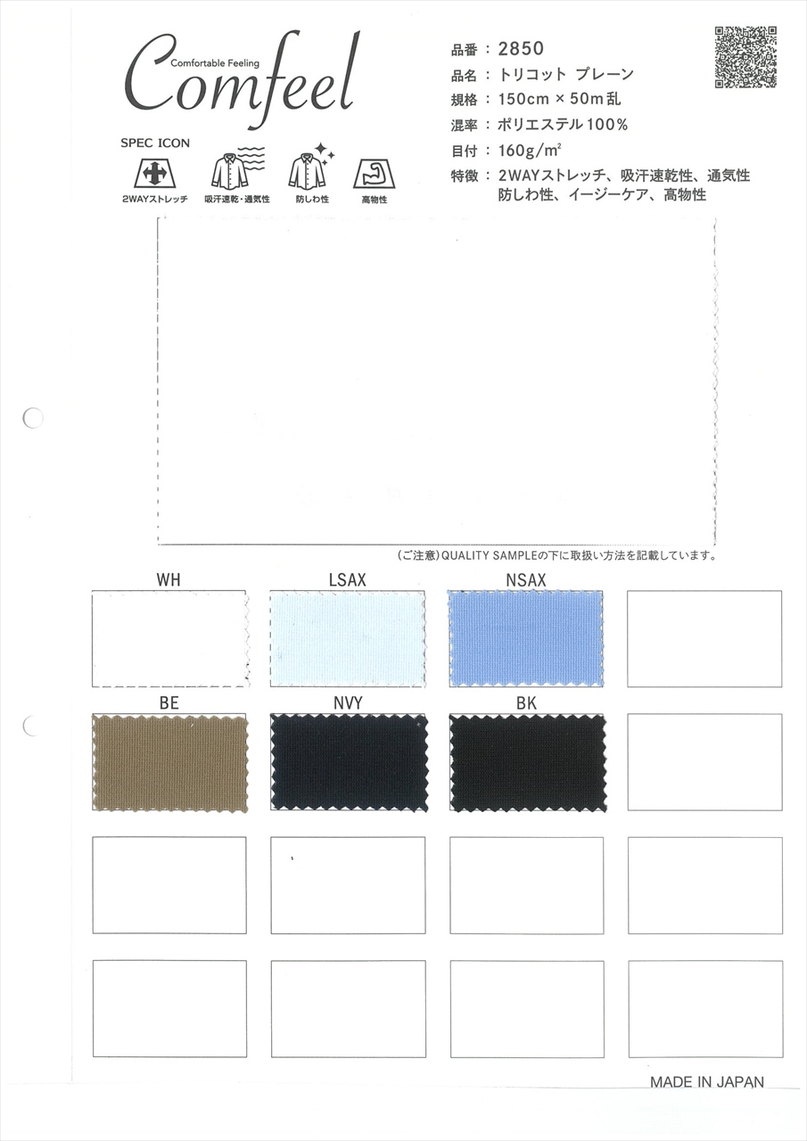 特徴:2WAYストレッチ、吸汗速乾性、通気性、防しわ性、イージーケア、高物性