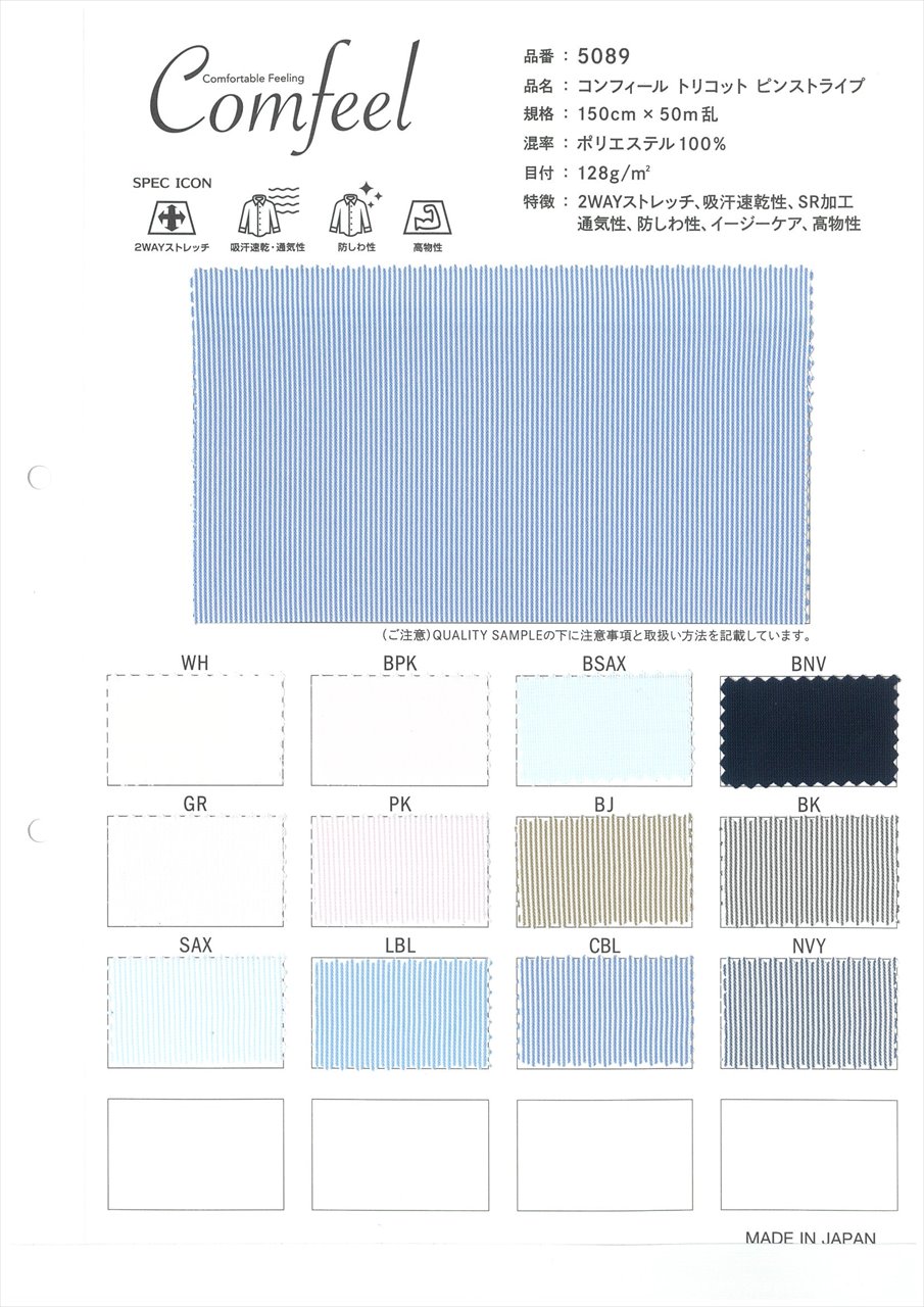 ハイゲージで編みこむことで布帛見えする高級感を持ったトリコットニット生地です。細かいストライプ柄でシャツやブラウス等汎用性が高い生地です。