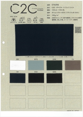 特徴:2WAYストレッチ、吸汗速乾性、リサイク糸使用、通気性、防しわ性、イージーケア、SR加工