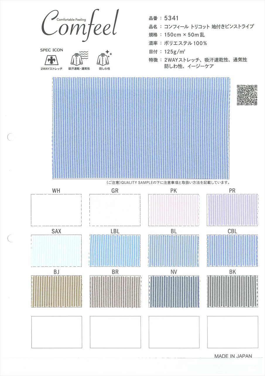 ハイゲージで編みこむことで布帛見えする高級感を持ったトリコットニット生地です。細かいストライプ柄でシャツやブラウス等汎用性が高い生地です。