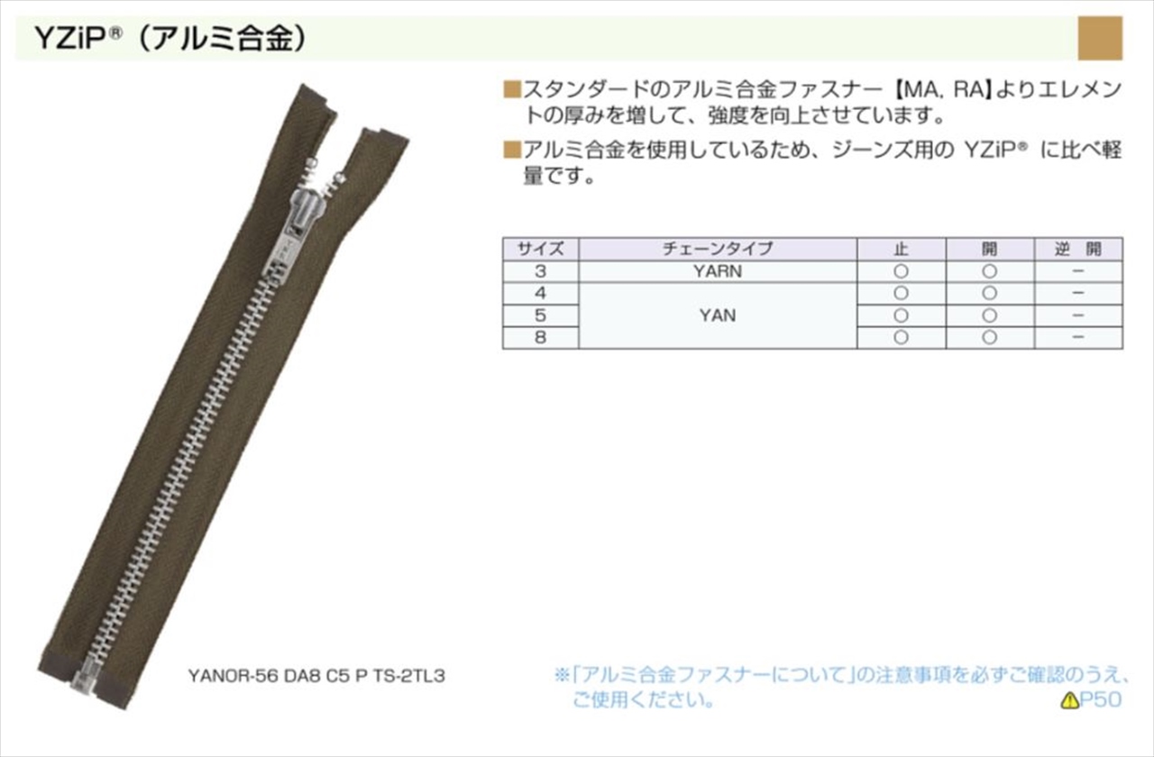 YKK ファスナーYZiP(R)(アルミ合金) 4号 止
